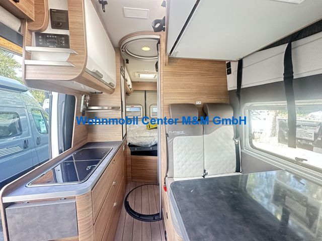 Scheibenbremsen Linkslenker Chassis in Sonderlackierung: Campovolo Grau Scheinwerfer mit schwarzem Rahmen Kühlergrillabdeckung in Wagenfarbe, lackiert Frontstoßfänger in Wagenfarbe lackiert Allwetterbereifung Leichtmetallfelgen für Serienbereifung Klimaanlage Fahrerhaus, manuell – inkl. Pollenfilter und Außentemperaturanzeige Fahrerairbag Beifahrerairbag Höhenverstellung Fahrersitz Höhenverstellung Beifahrersitz Lenkrad und Schaltknauf in Lederausführung Instrumententafel im Techno-Design (Alu) Cupholder in der Mittelkonsole Original FIAT Captainchair-Sitze mit Armlehnen Schublade unter Sitzen Fahrerhaussitze drehbar Fußmattenset im Fahrerhaus im KNAUS Design Sitzkasten-Verkleidungen Fahrerhaussitze Front- und Seitenscheibenverdunklung Tempomat – Cruise Control ESP Hill Holder (Berganfahrhilfe) ABS Elektronische Wegfahrsperre Elektromechanische Servolenkung Trailer Stability Control System Post Collision Braking System Seitenwindassistent Traktionshilfe „Traction Plus“, inkl. Bergabfahrhilfe Nebelscheinwerfer mit Abbiegelicht Fix&Go Reifenreparaturset Fahrzeugschlüssel mit Fernbedienung zur Ver- und Entriegelung der Fahrerhaustüren Elektrische Fensterheber (Fahrer- und Beifahrertür) Außenspiegel elektrisch einstell- und beheizbar Leseleuchten im Fahrerhaus Radiovorbereitung inkl. 2 Lautsprecher im Wohnraum Vorbereitung für Multimedia All-in-One Navigationssystem Rückfahrkamera, inkl. Verkabelung Head-up Display Insektenschutztür Einstiegstufe elektrisch (Breite: 70 cm) Schiebetür mit manueller Zuziehhilfe KNAUS Technikmodul mit Versorgungsinstallation Gaskasten für Gasflaschenvorrat 1 x 2, 7 kg Komfort-Rollo-System Fenster mit Sicherheitsverriegelung Rahmenfenster SEITZ S7P Dachhaube (Hebe-Kipp) 70 x 50 cm, mit Insektenschutz und Verdunklung (Bug) Dachhaube 40 x 40 cm klar, mit Insektenschutz und Verdunklung (Heck) Rahmenfenster SEITZ S7P 80 x 40 cm, mit Schiebetür-Begrenzer (Heck rechts) Rahmenfenster SEITZ S7P 80 x 40 cm (Heck links) Rahmenfenster für Hecktüren Ausstellfenster 28 x 30 cm, mit Insektenschutz und Verdunklung (Toilettenraum) Pilzlüfter (Toilettenraum) Bodenplatte in Sandwichbauweise Atmungsaktive Soft-Touch-Seitenwandverkleidung Temperierter Zwischenboden in der Dinettensitzgruppe Sonderbeklebung „PLATINUM SELECTION'' KNAUS Embleme im Bug und im Heck, schwarz/chrom Regenrinne über der Schiebetür mit LED (dimmbar) Möbeldekor: Matara Teak Möbelbau in Vollkorpusbauweise mit Dübeltechnik Möbelflächen vertikal mit ABS-Beschichtung Arbeitsfläche Küche und Tisch in CPL-Ausführung Aluminium-/Stabprofile mit Rundkanten Möbelscharniere mit Federverstärkung Schubladen, Klappen und Türen bündig in Möbelkorpus eingelassen Küchenschubladen mit Soft-Close-Funktion und kugelgelagertem Vollauszug Deckenschrankklappe mit Griff, Kipphebel und Soft-Close-Funktion Einteiliger Rückenpolster für Dinettensitzbank und großer Tisch Dinettensitzbank-Verbreiterung durch Seitenauszug (auch während der Fahrt) Schwebender Dinettentisch, ausdrehbar ISOFIX-System (2 Kindersitze) Zwei-Lagen-Kaltschaummatratzen mit atmungsaktivem und strapazierfähigem Matratzenüberzug Heckhubbett mit Lattenrost Matratzentopper Polster: Vegane Lederalternative ''NATURAL STONE'' ''PLATINUM SELECTION'' Kocher-Spülen-Kombination inkl. 2-Flammen-Kocher mit elektrischer Brennerzündung und geteilter Glasabdeckung Gasbedienteile zentral angeordnet Küchenarbeitsplatte mit klappbarer Arbeitsplattenverlängerung Kompressor-Kühlschrank 90 Liter (incl. 7, 5 Liter Gefrierfach) WC-Entsorgungstunnel mit Vollverkleidung Toiletten-/Duschraum mit Waschtisch, Kassetten-Toilette, Schiebespiegel und Ablagefächer * Kompaktbad mit p