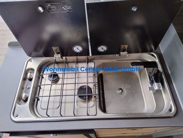Gasbedienteile zentral angeordnet Kompressor-Kühlschrank 70 Liter (incl. 7, 5 Liter Gefrierfach) Küchenarbeitsplatte mit klappbarer Arbeitsplattenverlängerung Toiletten-/Duschraum mit ausziehbarem Waschbecken und geräumigem Ober- und Unterschrank Dusche mit entnehmbarem Duschvorhang, sicher durch Magnete befestigt Kassetten-Toilette THETFORD drehbar Schiebemechanik für Toilette Einlegeboden für Duschwanne Gasschlauch Ausführung D/AT/ES/FI/BE/IT/NL/DK Gasregler Ausführung D/AT/ES/FI/BE/IT/NL/DK* Di