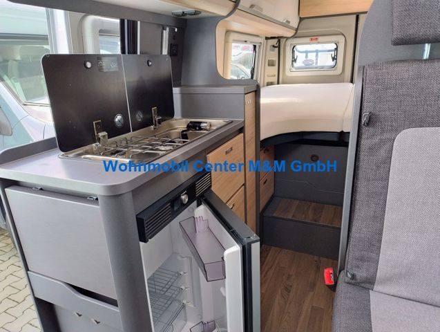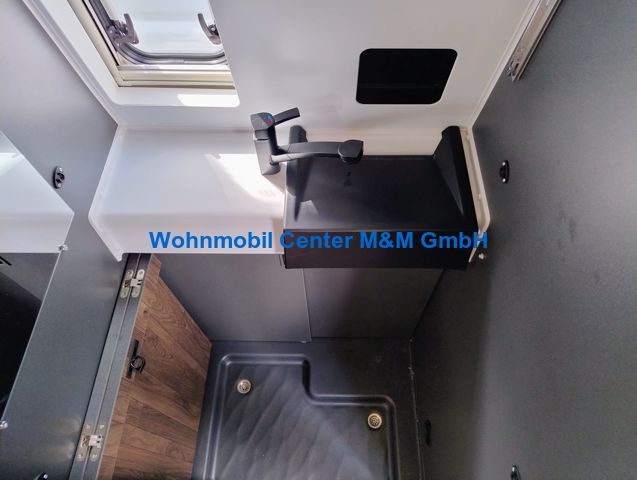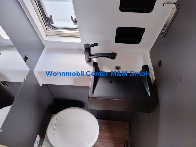 Gasbedienteile zentral angeordnet Kompressor-Kühlschrank 70 Liter (incl. 7, 5 Liter Gefrierfach) Küchenarbeitsplatte mit klappbarer Arbeitsplattenverlängerung Toiletten-/Duschraum mit ausziehbarem Waschbecken und geräumigem Ober- und Unterschrank Dusche mit entnehmbarem Duschvorhang, sicher durch Magnete befestigt Kassetten-Toilette THETFORD drehbar Schiebemechanik für Toilette Einlegeboden für Duschwanne Gasschlauch Ausführung D/AT/ES/FI/BE/IT/NL/DK Gasregler Ausführung D/AT/ES/FI/BE/IT/NL/DK * Die