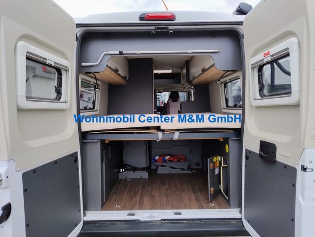 6-Gang-Schaltgetriebe Scheibenbremsen Linkslenker Chassis in Uni-Lackierung: Weiß Scheinwerfer mit schwarzem Rahmen Kühlergrillabdeckung in Wagenfarbe, lackiert Allwetterbereifung Klimaanlage Fahrerhaus, manuell – inkl. Pollenfilter und Außentemperaturanzeige Fahrerairbag Beifahrerairbag Höhenverstellung Fahrersitz Cupholder in der Mittelkonsole Original FIAT Captainchair-Sitze mit Armlehnen Fahrerhaussitze drehbar Sitzkasten-Verkleidungen Fahrerhaussitze Tempomat – Cruise Control ESP Hill Holder (Berganfahrhilfe) ABS Elektronische Wegfahrsperre Elektromechanische Servolenkung Trailer Stability Control System Post Collision Braking System Seitenwindassistent Fix&Go Reifenreparaturset Fahrzeugschlüssel mit Fernbedienung zur Ver- und Entriegelung der Fahrerhaustüren Elektrische Fensterheber (Fahrer- und Beifahrertür) Halogen Serienscheinwerfer mit Tagfahrlicht Insektenschutztür Schiebetür mit manueller Zuziehhilfe KNAUS Technikmodul mit Versorgungsinstallation Gaskasten für Gasaschenvorrat 1 x 2, 7 kg Komfort-Rollo-System Fenster mit Sicherheitsverriegelung Rahmenfenster SEITZ S7P Dachhaube (Hebe-Kipp) 70 x 50 cm, mit Insektenschutz und Verdunklung (Bug) Dachhaube 40 x 40 cm klar, mit Insektenschutz und Verdunklung (Heck) Rahmenfenster SEITZ S7P 80 x 40 cm (Heck links) Rahmenfenster SEITZ S7P 80 x 40 cm, mit Schiebetür-Begrenzer (Heck rechts) Rahmenfenster für Hecktüren Ausstellfenster 28 x 30 cm, mit Insektenschutz und Verdunklung (Toilettenraum) Pilzlüfter (Toilettenraum) Bodenplatte in Sandwichbauweise Atmungsaktive Soft-Touch-Seitenwandverkleidung Temperierter Zwischenboden in der Dinettensitzgruppe Möbeldekor: Egmond Elm Möbelbau in Vollkorpusbauweise mit Dübeltechnik Möbelflächen vertikal mit ABS-Beschichtung Arbeitsfläche Küche und Tisch in CPL-Ausführung Aluminium-/Stabprofile mit Rundkanten Möbelscharniere mit Federverstärkung Schubladen, Klappen und Türen bündig in Möbelkorpus eingelassen Küchenschubladen mit Soft-Close-Funktion und kugelgelagertem Vollauszug Deckenschrankklappe mit Griff, Kipphebel und Soft-Close-Funktion Einteiliger Rückenpolster für Dinettensitzbank und großer Tisch Dinettensitzbank-Verbreiterung durch Seitenauszug (auch während der Fahrt) Komfort-Funktion für Dinettensitzbank Schwebender Dinettentisch, ausdrehbar ISOFIX-System (2 Kindersitze) Zwei-Lagen-Kaltschaummatratzen mit atmungsaktivem und strapazierfähigem Matratzenüberzug Hecklängsbett mit durchgängigem Lattenrost Lattenroste inkl. Matratzen, stapel-/entnehmbar Kocher-Spülen-Kombination inkl. 2-Flammen-Kocher mit elektrischer Brennerzündung und geteilter Glasabdeckung