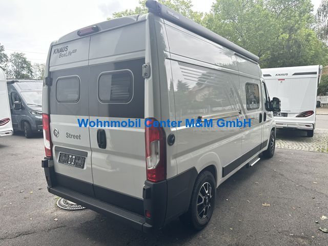 Knaus BoxLife Pro 600 Street auf Fiat Chassis 2025 FIAT CaVa 3.500 kg (140 PS) Euro 6e Media-Paket Rückfahrkamera, inkl. Verkabelung All-in-One Navigationssystem Head-up Display FIAT Paket - KNAUS Camper Vans Außenspiegel elektrisch einstell- und beheizbar Traktionshilfe „Traction Plus“, inkl. Bergabfahrhilfe Höhenverstellung Beifahrersitz Ablageschale unter dem Fahrersitz Vorbereitung für Multimedia Radiovorbereitung inkl. 2 Lautsprecher im Wohnraum Styling-Paket I - LIGHT Nebelscheinwerfer mit Abbiegelicht Lenkrad und Schaltknauf in Lederausführung Frontstoßfänger in Wagenfarbe lackiert Leichtmetallfelgen für Serienbereifung Bereifung Spoilerlippen (skid-plate) Instrumententafel im Techno-Design (Alu) Funline-Paket Einstiegstufe elektrisch (Breite: 70 cm) Lichtsteuerung TRUMA CP-Plus, digitales Heizungsbedienpanel Isolierhaube Abwassertank, beheizbar Markise 375 x 250 cm, anthrazit Front- und Seitenscheibenverdunklung Ambiente Licht-Paket inkl. Lichtsteuerung Regenrinne über der Schiebetür mit LED (dimmbar) Stimmungsvolle Ambientebeleuchtung E-Paket 230 V SCHUKO-Steckdose zusätzlich, im Heck (1 Stück) 230 V SCHUKO-Steckdose zusätzlich, im Deckenschrank Bug links (1 Stück) 12 V Powersteckdose (1 Stück) Leseleuchten im Fahrerhaus Leselampe Schwanenhals im Sitzbereich inkl. USB-Steckdose Polster: TURIN