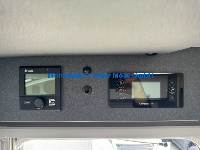 Sonderausstattung:* Kraftstofftank 90 Liter Zusätzlicher Fahrzeugschlüssel mit Fernbedienung Voll-LED-Frontbeleuchtung (Abblend-, Fern- und Blinklicht) Aufbautür: KNAUS Premium Einstiegstufe elektrisch Rahmenfenster SEITZ S7 Fußmattenset im Fahrerhaus im KNAUS Design TRUMA DuoControl CS (inkl. Gasfilter Serienausstattung: