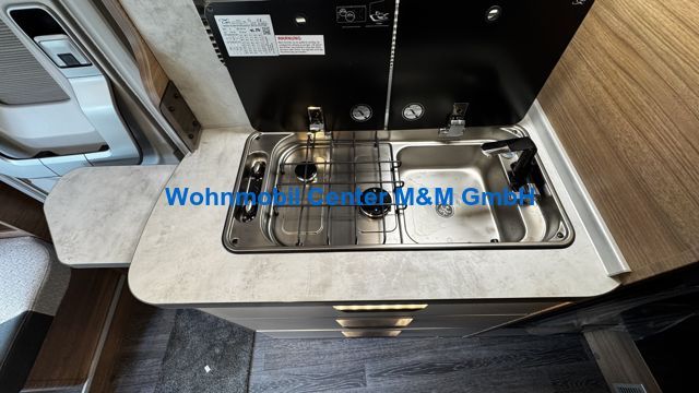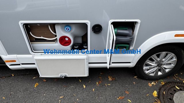 Knaus Van Wave 640 MEG VW Vansation Mod 2025 Sondermodell VANSATION VW Crafter 35 3.500 kg 2, 0 l TDI Euro 6E SCR 8-GangAutomatikgetriebe (120 kW/163 PS) Auflastung von 3.500 kg auf 3.850 kg Aufbautür: KNAUS PREMIUM Anhängekupplung, Kugelstange abnehmbar Vorderachse, verstärkt (2.100 kg Traglast Sicherheits-Paket II Alarmanlage „Cobra“Gassensor als Erweiterung zur Alarmanlage