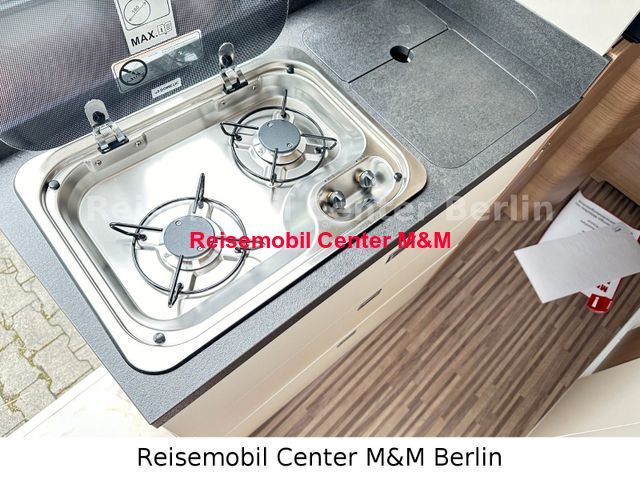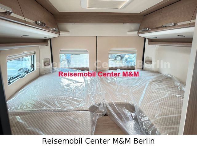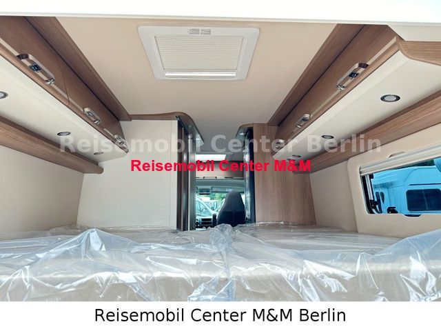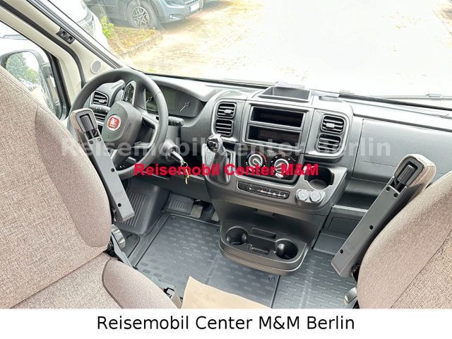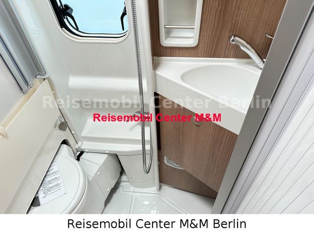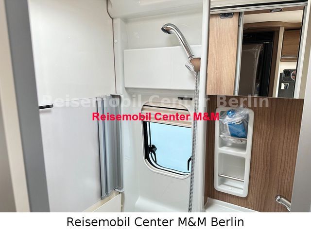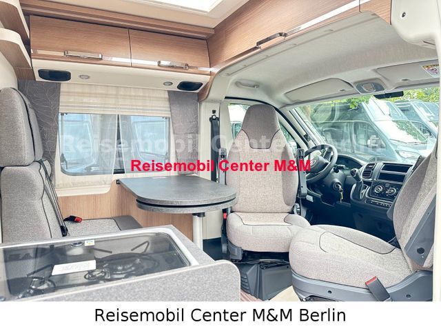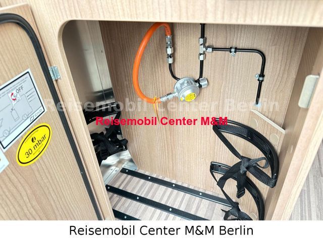 Chassis Paket, bestehend aus: Fahrerhausverdunklungssystem Plissee an Front- und Seitenscheiben, Fliegenschutzgitter hinter Schiebetür, Außenspiegel, elektrisch verstell- und beheizbar, Beifahrersitz höhenverstellbar, Pilotensitze in Wohnraumstoff bezogen inkl. gepolsterten Armlehnen, Radiovorbereitung mit Dachantenne und DAB+, Lautsprecher (4x), Armaturenbrettveredelung: Lüftungsgitter in Chrom, Kraftstofftank 90 Liter, Ladebooster, Einparkhilfe mit Sensoren am Heck Paket Aufbau, bestehend aus: Verzurrsystem Gepäckraum, Upgrade Küchencenter, Truma CP Plus digitales Bedienpanel, Dachinnenverkleidung mit Mikrofaser-Klimabelag, Abwassertank in Gehäuse eingefasst und isoliert, Qualitäts-Kaltschaummatratze im Heckbett, Deckenbaldachin Wohnraum mit indirekter LED-Ambientebeleuchtung Style Paket bestehend aus: Kühlergrill in Hochglanz schwarz, Scheinwerferrahmen in schwarz, Lenkrad und Schaltknauf in Leder, Stoßfänger in Wagenfarbe lackiert, Radzierblenden für 16 Zoll Stahlfelgen PREMIUM-FENSTER im Waschraum Stilwelt Cherry Classic Navi ist bereits nachgerüstet Markise London Stoffkombination
