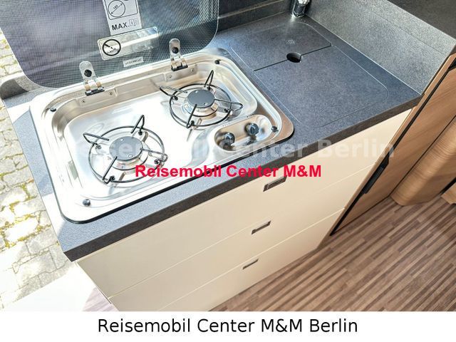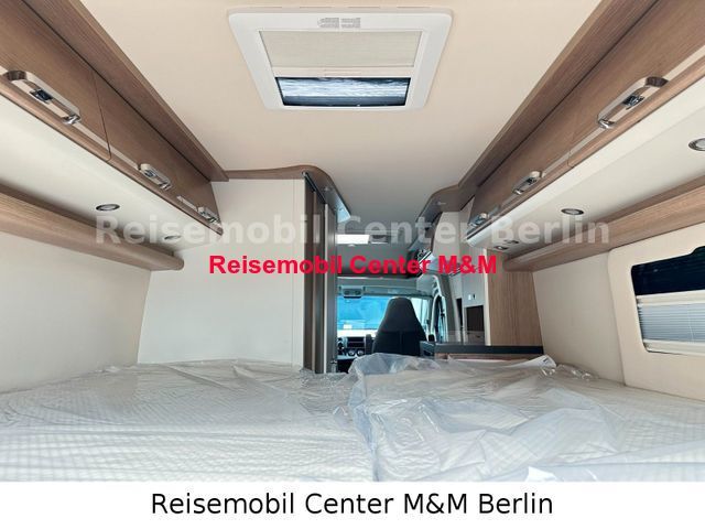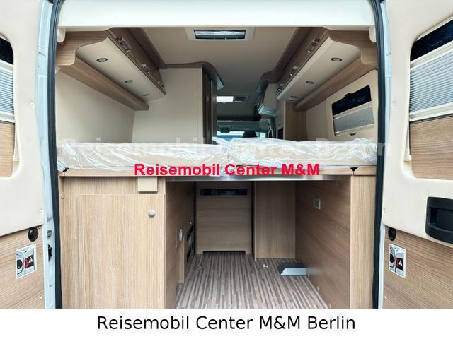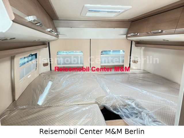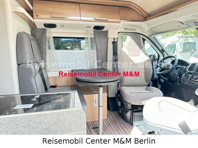 Chassis Paket, bestehend aus: Fahrerhausverdunklungssystem Plissee an Front- und Seitenscheiben, Fliegenschutzgitter hinter Schiebetür, Außenspiegel, elektrisch verstell- und beheizbar, Beifahrersitz höhenverstellbar, Pilotensitze in Wohnraumstoff bezogen inkl. gepolsterten Armlehnen, Radiovorbereitung mit Dachantenne und DAB+, Lautsprecher (4x), Armaturenbrettveredelung: Lüftungsgitter in Chrom, Kraftstofftank 90 Liter, Ladebooster, Einparkhilfe mit Sensoren am Heck Paket Aufbau, bestehend aus: Verzurrsystem Gepäckraum, Upgrade Küchencenter, Truma CP Plus digitales Bedienpanel, Dachinnenverkleidung mit Mikrofaser-Klimabelag, Abwassertank in Gehäuse eingefasst und isoliert, Qualitäts-Kaltschaummatratze im Heckbett, Deckenbaldachin Wohnraum mit indirekter LED-Ambientebeleuchtung Premium Fenster im Waschraum Navigationssystem Markise Fahrradträger Stilwelt Cherry Classic: Möbeloberlfäche in Bicolor-Optik in Dekor Edelkirsche, Dachschrankboden in Elfenbein matt London - Stoff-Kombination