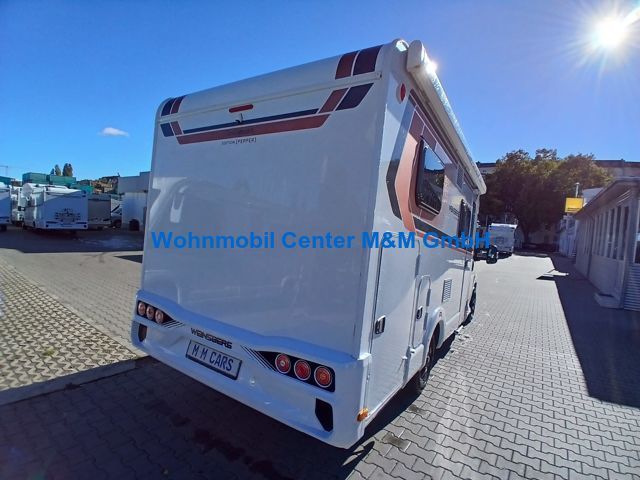 Aufbautür: WEINSBERG PREMIUM Einstiegstufe elektrisch Ausstellfenster 70 x 40 cm (Heck links) Allwetterbereifung Pepper Edition Serienausstattung 16'' Bereifung Leichtmetallfelgen für Serienbereifung mit Allwetterbereifung Klimaanlage Fahrerhaus, manuell – inkl. Pollenfilter und Außentemperaturanzeige All-in-One Navigationssystem Rückfahrkamera, inkl. Verkabelung Head-up Display Markise 405 x 250 cm, weiß Externe LTE / W-LAN Antenne 24'' SMART TV-Gerät mit HD-Tuner TV-Halter Stimmungsvolle Ambientebeleuchtung Kühlergrill schwarz, mit verchromter Spange Frontstoßfänger in Wagenfarbe lackiert Fahrerairbag- und Beifahrerairbag Höhenverstellung Fahrersitz und Beifahrersitz Lenkrad und Schaltknauf in Lederausführung Lenkrad mit Bedienelementen für Radio Original FIAT Captainchair-Sitze mit Armlehnen und Passform-Sitzbezüge für Fahrer-/Beifahrersitz imWEINSBERG Wohnwelt-Design