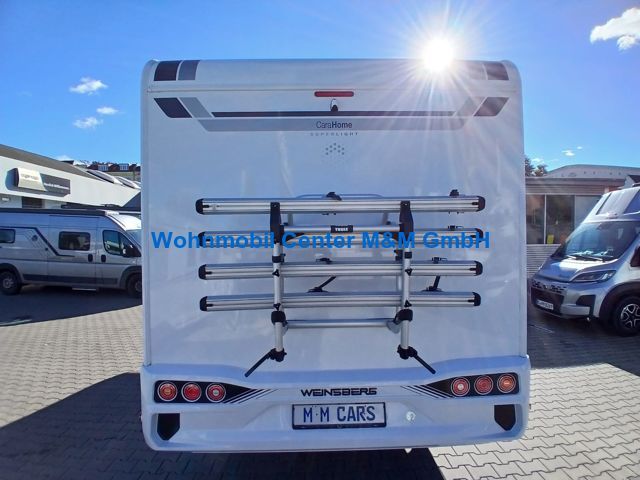 Weinsberg CaraHome 650 DG Modell 2025 Fiat Ducato 3.500 kg 2, 2l 140 PS MultiJet Allwetterbereifung Zugelassene Sitzplätze im Fahrbetrieb: 5 Elektrische Parkbremse Zusätzlicher Fahrzeugschlüssel mit Fernbedienung Fahrradträger für 4 Räder, Heck: THULE ELITE G2 Aufbautür Weinsberg Premium Einstiegsstufe elektrisch Garagentür 80 x 110 cm, links Alkovenfenster, links Ausstellfenster 70 x 40 cm (Heck links) ISOFIX-System (2 Kindersitze) Polster: Dusk Aufklappbare Arbeitsplattenverlängerung an der Küche Lithium (LiFePO4)-Bordbatterie (statt Serienbatterie) Markise 455 x 250 cm, weiß Nachrüstung Navi mit RückfahrkameraPakete