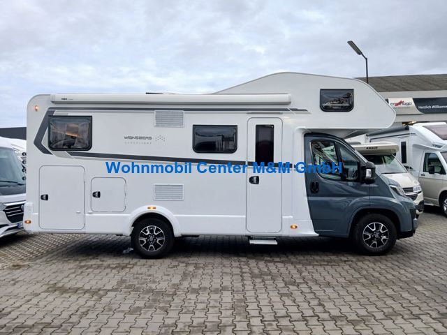 Fiat Ducato 3.650 kg 2, 2l 140 PS Auflastung von 3.500 kg* auf 3.650 kg / Ablastung bei Reduzierung eines Sitzplatzes im Fahrbetrieb möglich** Allwetterbereifung Zugelassene Sitzplätze im Fahrbetrieb: 6 (5 Sitzplätze im Fahrbetrieb bei 3.500 kg möglich) Kurbelstützen im Heck Elektrische Parkbremse Zusätzlicher Fahrzeugschlüssel mit Fernbedienung Fahrradträger für 4 Räder, Heck: THULE ELITE G2 Zusätzliche Zurrschienen, in der Garage (2 Stück) Aufbautür Weinsberg Exklusiv mit Zentralverriegelung über Fahrzeugschlüssel Einstiegsstufe elektrisch Garagentür 80 x 110 cm, links Ausstellfenster 52 x 50 cm, mit Insektenschutz und Verdunklung (Toilettenraum) ISOFIX-System (2 Kindersitze) EvoPore HRC Matratze inkl. WaterGEL-Auflage, nur Festbetten Alkovenbett klappbar Aufklappbare Arbeitsplattenverlängerung an der Küche Duschraum de Luxe mit Kunststoffverkleidung und Duschtür Alkovenheizung Dach-Klimaanlage DOMETIC FJX4 2200 FS, weiß USB-Steckdose (1 Stück), im Heck Stimmungsvolle Ambientebeleuchtung Lithium (LiFePO4)-Bordbatterie (statt Serienbatterie) Markise 455 x 250 cm, weiß Navigationssystem Pakete