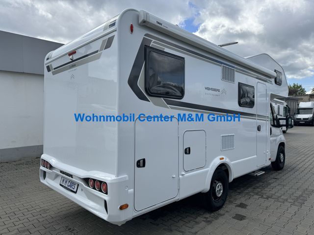 Breitspurfahrwerk Hinter-/Vorderachsstabilisator Kunststoff Blattfedern Klimaanlage Fahrerhaus, manuell – inkl. Pollenfilter und Außentemperaturanzeige Fahrer- und Beifahrerairbag Tempomat – Cruise Control ESP, ABS, Hill Holder (Berganfahrhilfe) Trailer Stability Control System Seitenwindassistent Fahrzeugschlüssel mit Fernbedienung zur Ver- und Entriegelung der Fahrerhaustüren Maximale Traglast der Heckgarage: 150 kg Vorbereitung für Anhängevorrichtung Aufbautür: WEINSBERG KOMFORT WEINSBERG Easy-Travel-Box Gaskasten für 2 x 11 kg Gasflaschen Garagentür 80 x 110 cm, rechts Dachhaube 40 x 40 cm klar, mit Insektenschutz und Verdunklung (Alkoven) Alkovenfenster, rechts Dachhaube 40 x 40 cm klar, mit Insektenschutz und Verdunklung (Heck) Dachhaube 28 x 28 cm, mit Insektenschutz (Toilettenraum) GFK-Dach mit reduzierter Hagelempfindlichkeit Heckleuchtenträger mit LED-Leuchten Vorzeltleuchte mit Bewegungsmelder Kopfstützen gegen Fahrtrichtung EvoPore HRC Matratze, nur Festbetten EvoPore HRC Matratze, Alkoven-/Etagenbetten Sicherheitsnetz an Alkoven- und Etagenbetten Bettumbau der Sitzgruppe 3-Flammen-Kocher mit Glasabdeckung, Spülbecken aus Edelstahl, versenkt Kühlschrank 177 Liter, mit Doppeltüranschlag Automatische Energiewahl für Kühlschrank (AES) Hochwertiger kugelgeführter Auszug mit Soft-Close, mit Besteckeinsatz Kassetten-Toilette DOMETIC drehbar Gasanlage 30 mbar Gasschlauch Ausführung D/AT/ES/FI/BE/IT/NL/DK Heizung TRUMA Combi 6 Zuschalt-/Trennautomatik für Starter- und Aufbaubatterie Ladeautomat elektrisch für Aufbau-/Fahrzeugbatterie Überwiegend LED-Beleuchtung im Wohnraum Ladebooster für Aufbaubatterie Dichtigkeitsgarantie 10 Jahre Pannenhilfeset Interne Nummer: RWK969