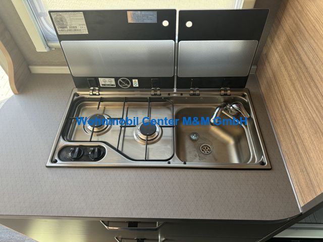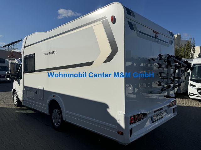 Ford Easy Fuel Komfort-Tankverschluss und Fehlbetankungsschutz Kraftstofftank 70 Liter Start-Stopp-System Elektrische Fensterheber (Fahrer- und Beifahrertür) Zentralverriegelung mit Fernbedienung (2 Schlüssel, 1 davon klappbar mit Fernbedienung) FORD MyKey-Schlüsselsystem Außenspiegel mit integrierten Blinkleuchten elektrisch einstellbar und beheizbar Halogen Serienscheinwerfer mit Tagfahrlicht Wärmeschutzverglasung, leicht getönt Überkopfablage Fahrerhaus Scheinwerfer mit Ausschaltverzögerung Radiovorbereitung inkl. Lautsprecher im Fahrerhaus (FORD) Audiosystem FORD Vorbereitung für Anhängevorrichtung Aufbautür: WEINSBERG KOMFORT Ein-Schlüssel-Schließanlage Service-/Stauraumklappen und Garagentür/-klappe mit Ein-Hand-Bedienung WEINSBERG Easy-Travel-Box Serviceklappe für WEINSBERG ServiceBox Einfacher Zugang zu Gaskasten über Servicetür in der Seitenwand, Anordnung der Gasflaschen längs Gaskasten für 2 x 11 kg Gasflaschen Garagentür 80 x 110 cm, rechts Fenster mit Doppelverglasung getönt, vorgehängt und ausstellbar, mit Insektenschutz und Verdunklung Dachhaube 40 x 40 cm klar, mit Insektenschutz und Verdunklung (Heck) Pilzlüfter (Toilettenraum) GFK-Dach mit reduzierter Hagelempfindlichkeit in Weiß Alu-Glattblech, weiß Dach- und Seitenwände in Sandwichbauweise Widerstandsfähige Unterbodenbeschichtung Heckleuchtenträger mit LED-Leuchten Vorzeltleuchte mit Bewegungsmelder Belüftete Stauschränke und Truhen Möbeldekor: Tiberino Profilleisten teilweise in Echtholz Vinyl-Bodenbelag – Natural Oak Garderobe Kiiper-Netze für je 2 Ablagen (Heck rechts und links) Monositzgruppe mit Einhängetisch, inkl. ausdrehbarer Tischverlängerung EvoPore HRC Matratze, nur Festbetten Hubbett mit hochwertiger Hubmechanik Polsterauswahl: KOCAELI Kocher-Spülen-Kombination inkl. 2-Flammen-Kocher mit elektrischer Brennerzündung und geteilterGlasabdeckung